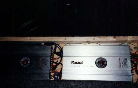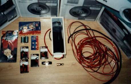 De versterker die ik in de kadett had liggen was een Magnat classic gladiator 360, en ben daar nog steeds zeer tevreden mee, dus de planning is om precies dezelfde versterker bij te kopen. Maar eerst ging ik naar mijn plaatselijke hifidealer, om een aantal stekkers, en subwooferkabels te gaan halen, deze vond ik best wel aan de dure kant dus ging ik in een blad zoeken (hifi inbouwblad) naar dealers, ik vond een dsl dealer en ging daar meteen naartoe, daar kocht ik 2 basreflex pijpen, +kabel 25mm kwadraat 2  x - kabel 10mm kwadraat, nog meer vergulde stekkertjes, zekering blok van dsl, en nog wat staafzekeringen. Een dag eerder had ik al een zekering verdeeldoosje gekocht bij de plaatselijke electrozaak, die een beetje hifispul heeft.