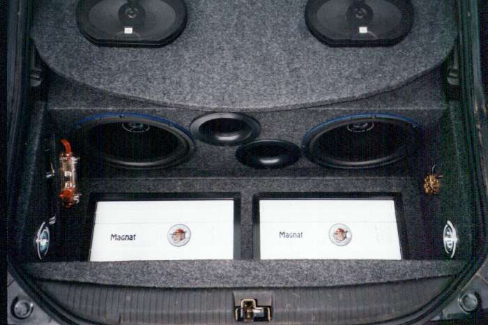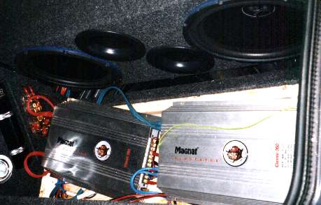 De versterker kon mijn plan niet aan dus moest ik er nog 1tje kopen, en moest er ook een condensator bij komen, deze bestelde ik bij een audiospeciaalzaak en kocht ook meteen meer deurspeakers die niet bleken te passen maar wel in mijn achterbank panelen. Dus ging ik terug bij een andere zaak om pasklare kenwood opelspeakers te kopen. Teven kocht ik bekleding en een meter of 40 kabel bij elkaar.